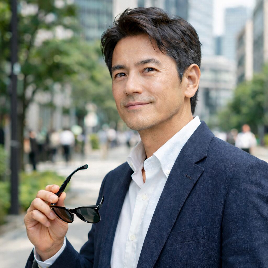 婚活写真でも、日差しの中で自然にかけてる姿は“清潔で頼れる印象”を与えるわ。